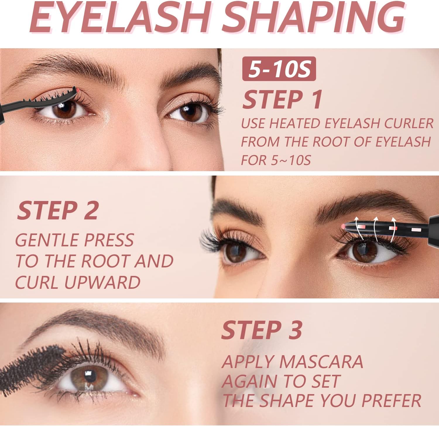 - HEATED EYELASH CURLER-QUICK HEATING AND EASY USE: BUV heated eyelash curlers have a quick 10-second pre-heat time, preparing lashes in seconds. No pinching or burning—these curlers provide a comfortable, hassle-free experience
