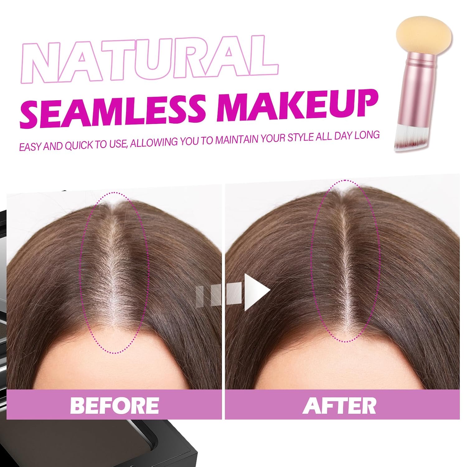 - COMPACT ROOT TOUCH UP HAIR COLOR: Unique travel kit design, hairline shadow powder come with mirror, hairline powder, powder puff and rose pink dual-ended hair makeup brush applicator with sponge tip, convenient to carry on daily or traveling. You can cover hair root instantly, define your hairline and make up at anytime, anywhere