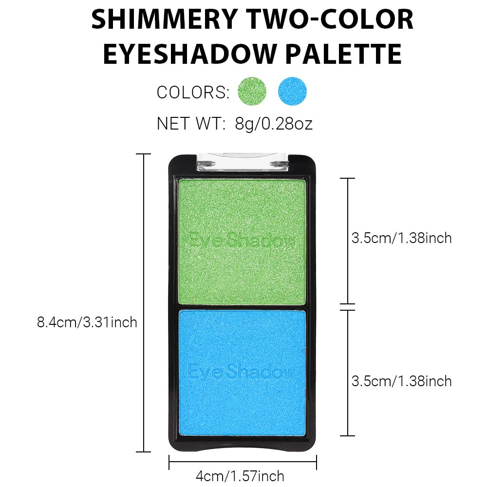 2 colors eye shadow makeup palette, Blue & Green Eyeshadows Halloween Birthday Party Wear, high pigment eye, matte & shimmer metal eye shadow powder, Blendable, Ultra-Pigmented(02)