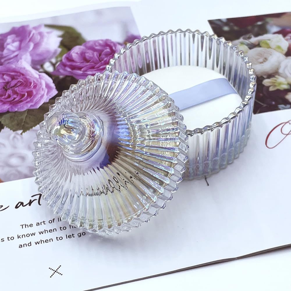 - Exquisite and elegant crystal glass container: The container is made of high-quality crystal glass, with a unique and clever design that reflects a dazzling light in the sunlight.It is not just a powder puff jar,but also a decorative artwork.It can also be used as a container for jewelry,candy,and chocolate