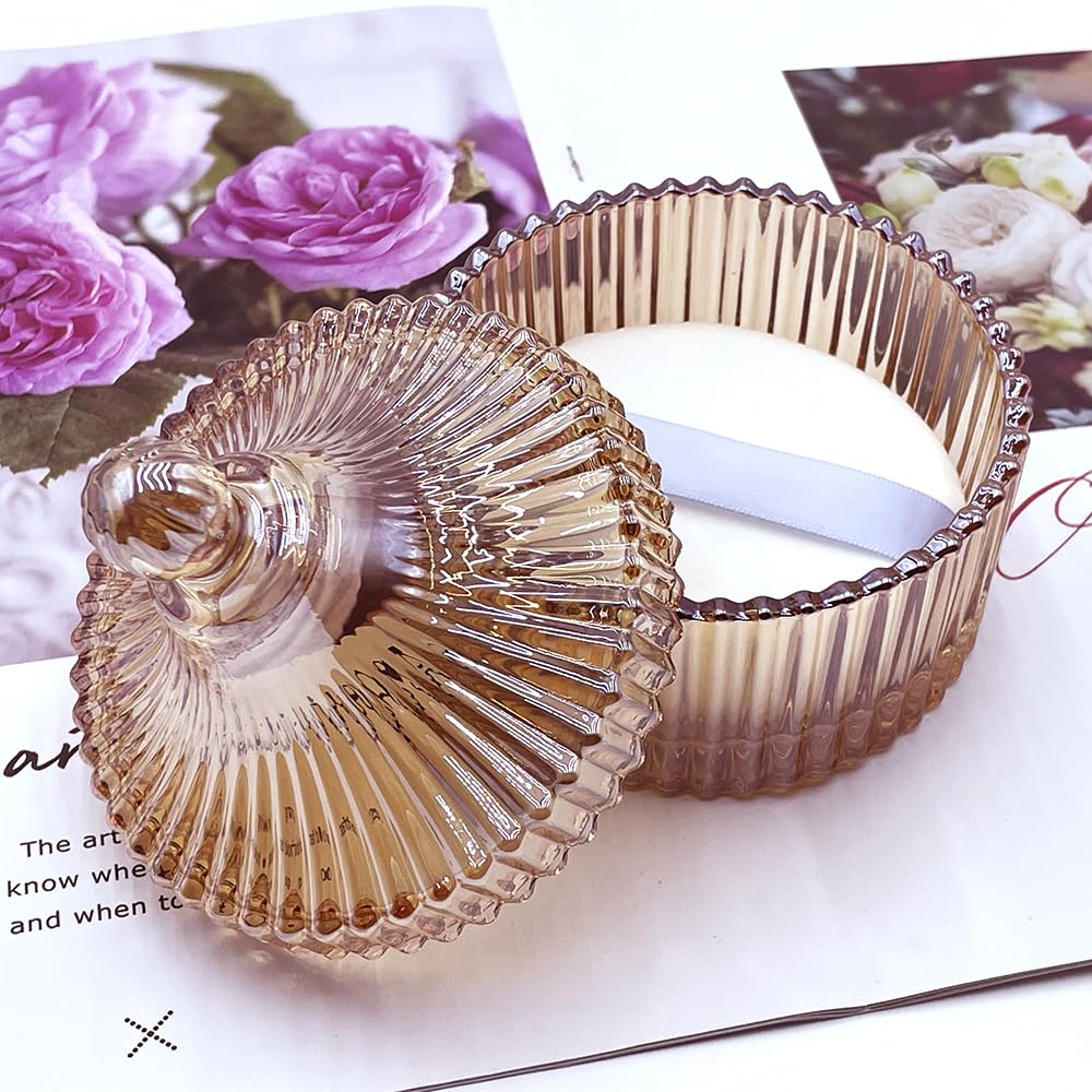 - Exquisite and elegant crystal glass container: The container is made of high-quality crystal glass, with a unique and clever design that reflects a dazzling light in the sunlight.It is not just a powder puff jar,but also a decorative artwork.It can also be used as a container for jewelry,candy,and chocolate