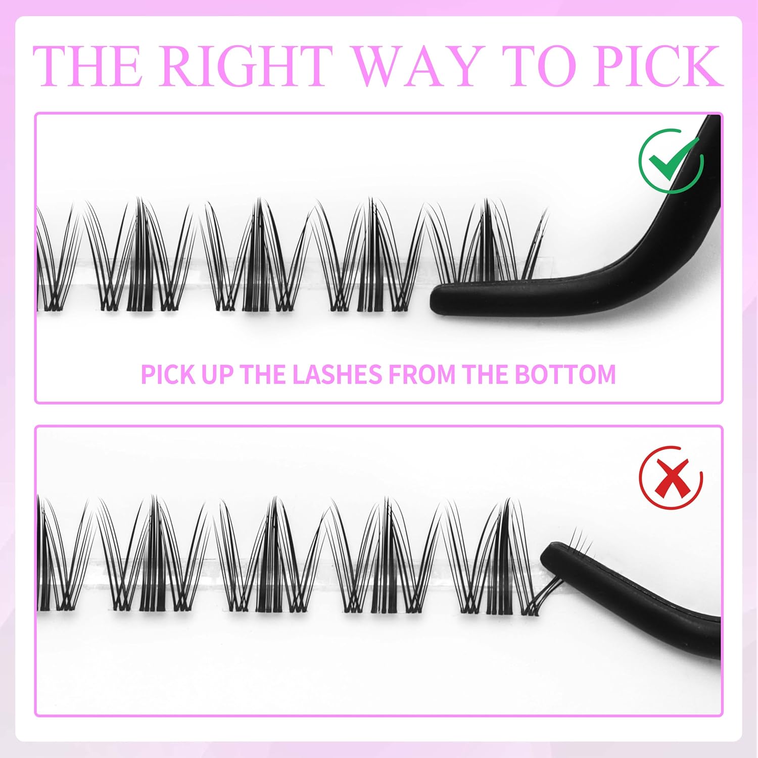 - Newbie's Five-Second Lashes : Eyelash clusters with wider bands, only 4-6 clusters per eye, ensure that lash newbies can simply and quickly complete a perfect lash extension(Only eyelashes, does not include glue and glue remover, can be purchased separately)