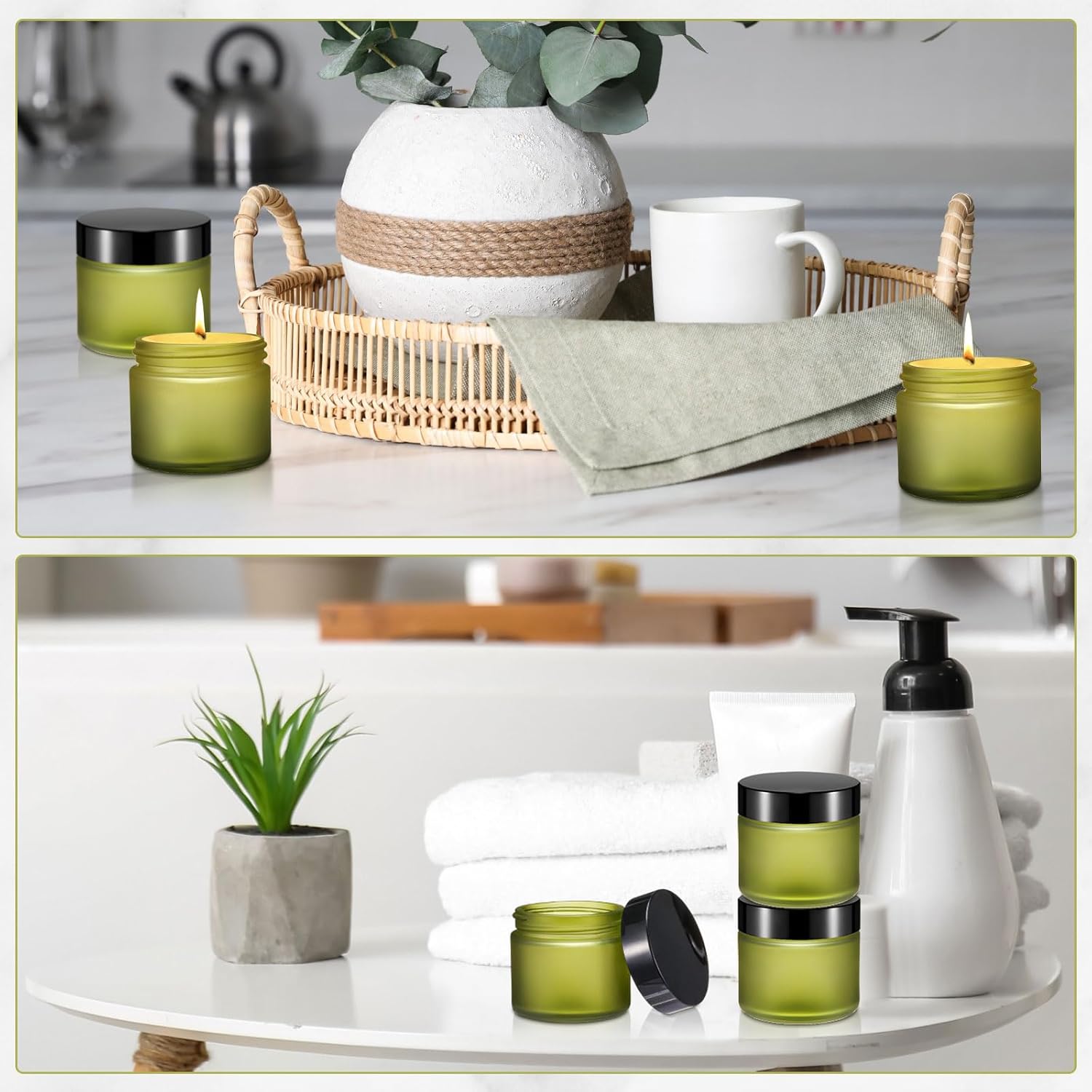 - Wide Use: these pea green glass jars with lids can be applied to store cosmetics, fragrances, essential oils, creams, lotions, trinkets, candles or preserves, etc. And they can be applied to fill tea packages to give to your father as a Father's Day gift, and other various festive handmade crafts such as homemade candles, aromatherapy creams, handmade face creams, moisturizing creams, jams and so on; This glass jar is ideal for holiday gifting to express your heart and creativity