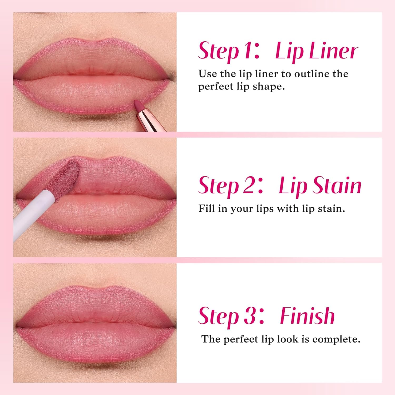 - 【Easy to Apply & SAFE FORMULA】 Begin by outlining your desired lip shape with the lip liner, then fill in your lips with lipstain to achieve the perfect look. Beginners can also use it easily. Meanwhile, we use safe vegan formulas that are not tested on animals, so you can use them with more confidence.