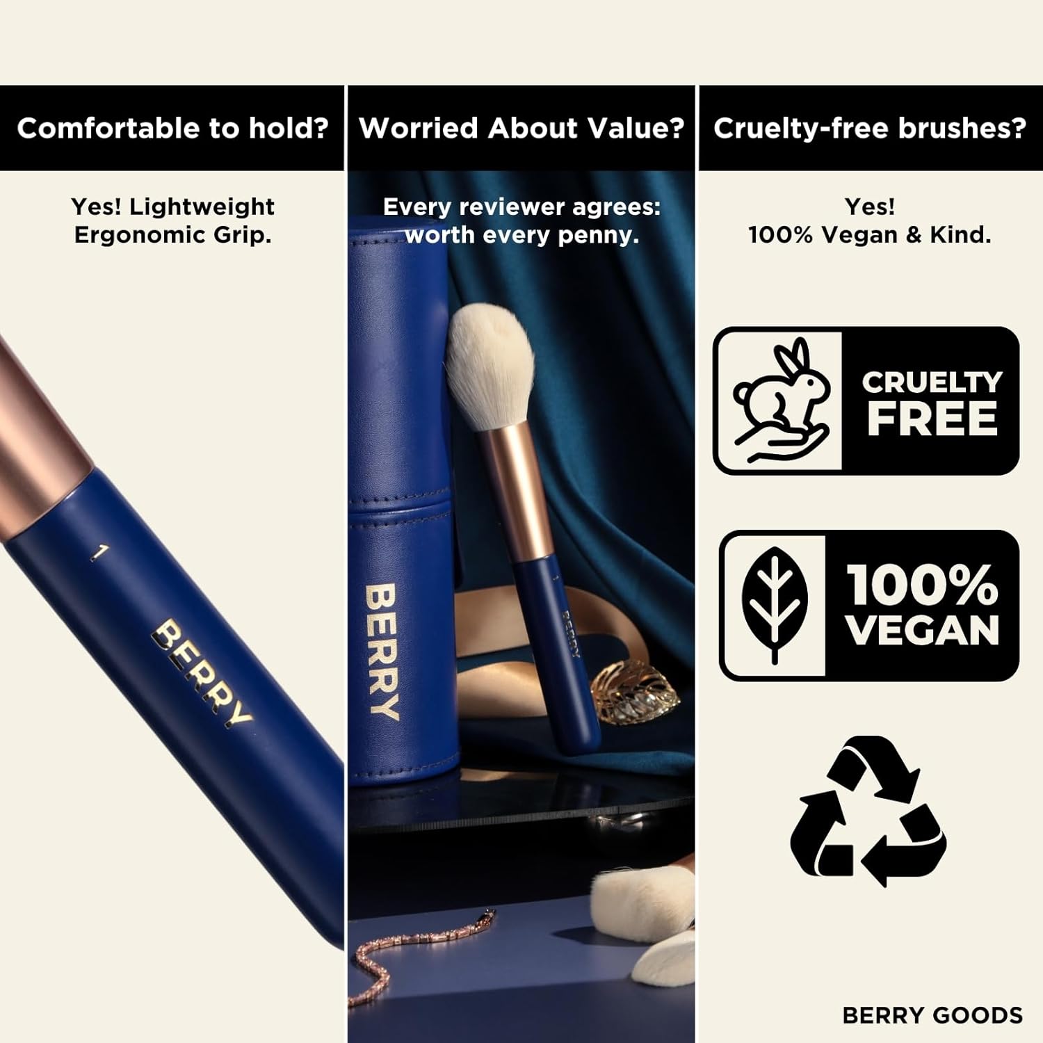 - Sustainable & Cruelty-Free Beauty: No animal hair, no petroleum-based fibers. Our eco-conscious brushes are vegan, cruelty-free, and built to outperform — combining ethics with exceptional quality.