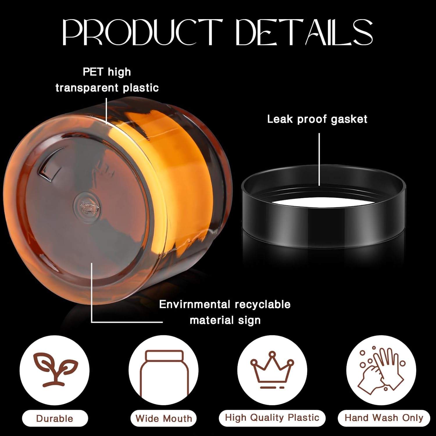 - Warm Notes: the body of the plastic cosmetic jars with lids is made of PET plastic, and the temperature of the stored items cannot exceed 65 degrees Celsius/ 149 degrees Fahrenheit, otherwise it will be deformed; Do not wash the bottle in the dishwasher, and do not use the microwave; Wash with cold or warm water and dry at room temperature