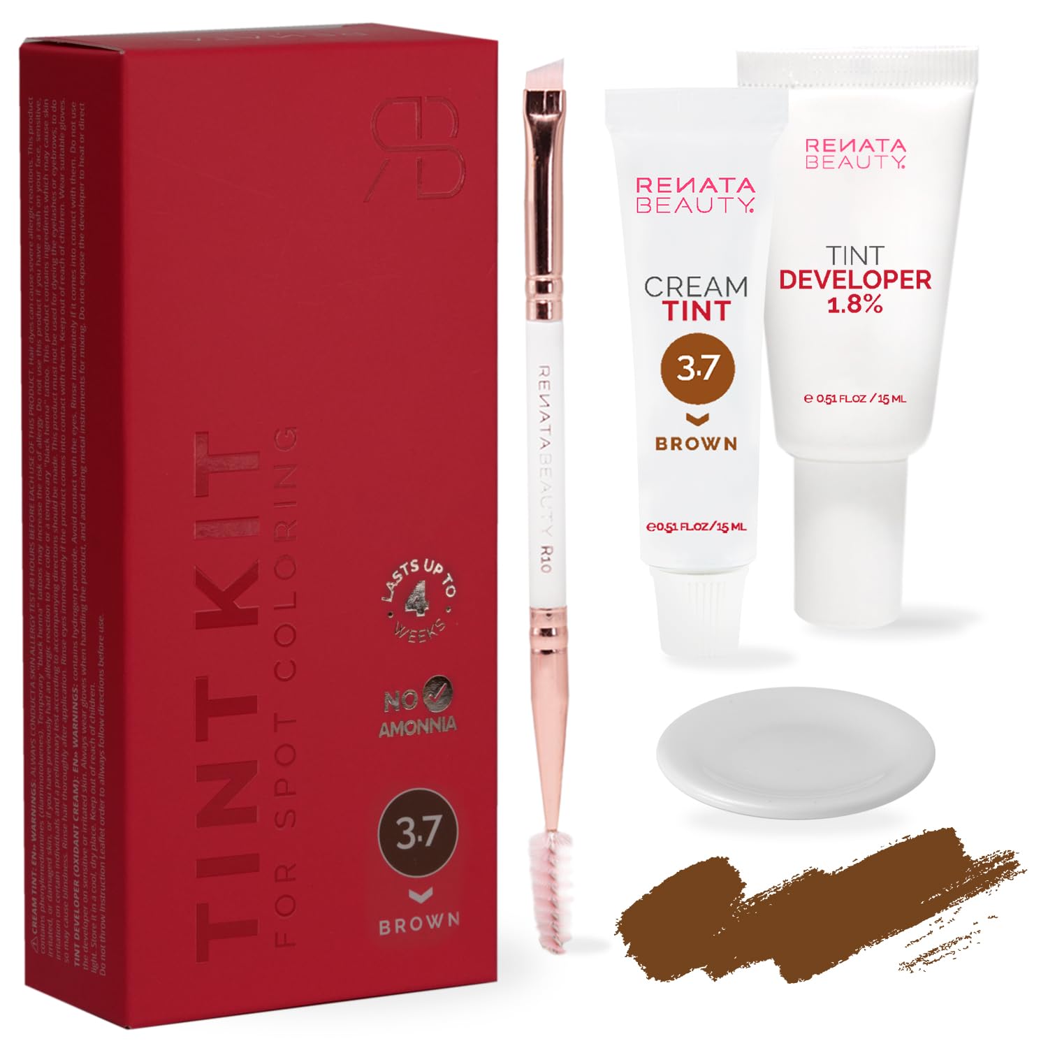 RB RENATA BEAUTY Tint Kit – Cream Hair Dye Kit with Developer and Application Brush for Spot Coloring - Covers Gray Hairs, Smudge-Proof, Long-Lasting Up to 4 Weeks, 20 Applications [Brown]
