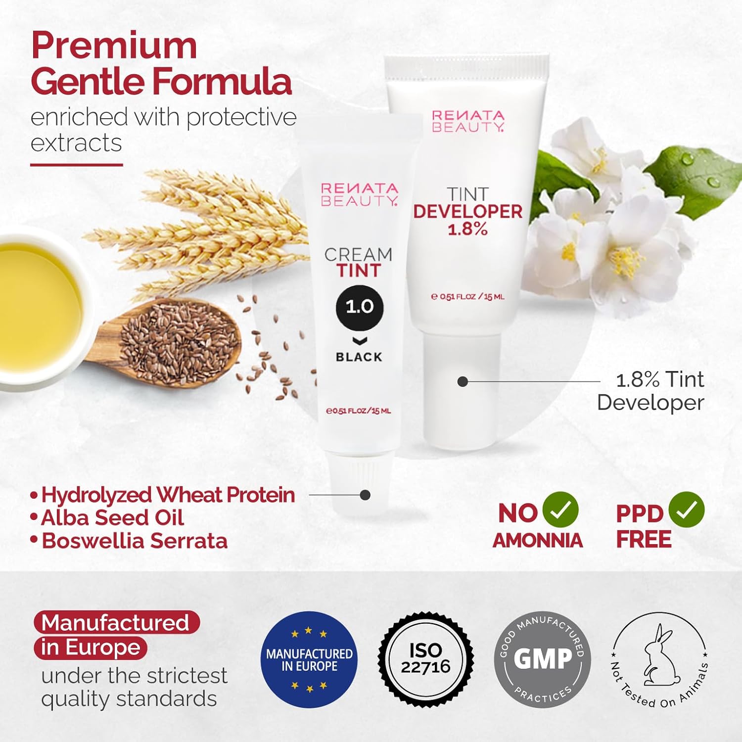 RB RENATA BEAUTY Tint Kit – Cream Hair Dye Kit with Developer and Application Brush for Spot Coloring - Covers Gray Hairs, Smudge-Proof, Long-Lasting Up to 4 Weeks, 20 Applications [Black]