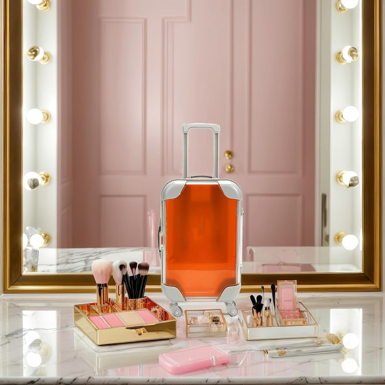 False Eyelash Storage Box, Portable Travel Organizer Mini Luggage False Eyelash Tray Makeup Tool (ORANGE)