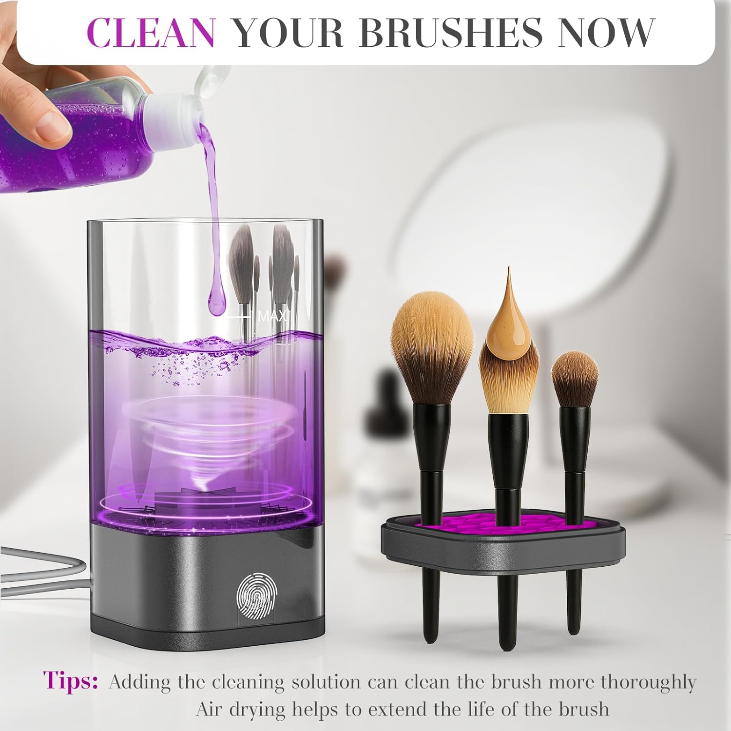 - Itโs Easier Than You Think: Simply add water and cleaning solution, insert your brush. After cleaning, rinse the brush and dry it, then insert it in the brush cleaner to dry or let it air dry thoroughly. The brush cleaner also doubles as a brush holder, keeping your brushes organized and ready for use