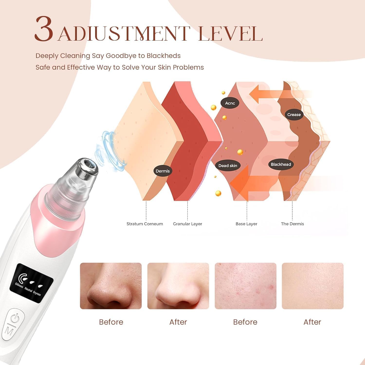 - 【Rechargeable & Portable Display】–The extractor vacuum has a built-in USB rechargeable battery , a single charge supports superior standby time.you can check the suction level and battery power on the display. Our pore extractor is design for daily facial treatment, Suitable for traveling and convenient to carry, It is also a very wise choice as a Christmas gift.