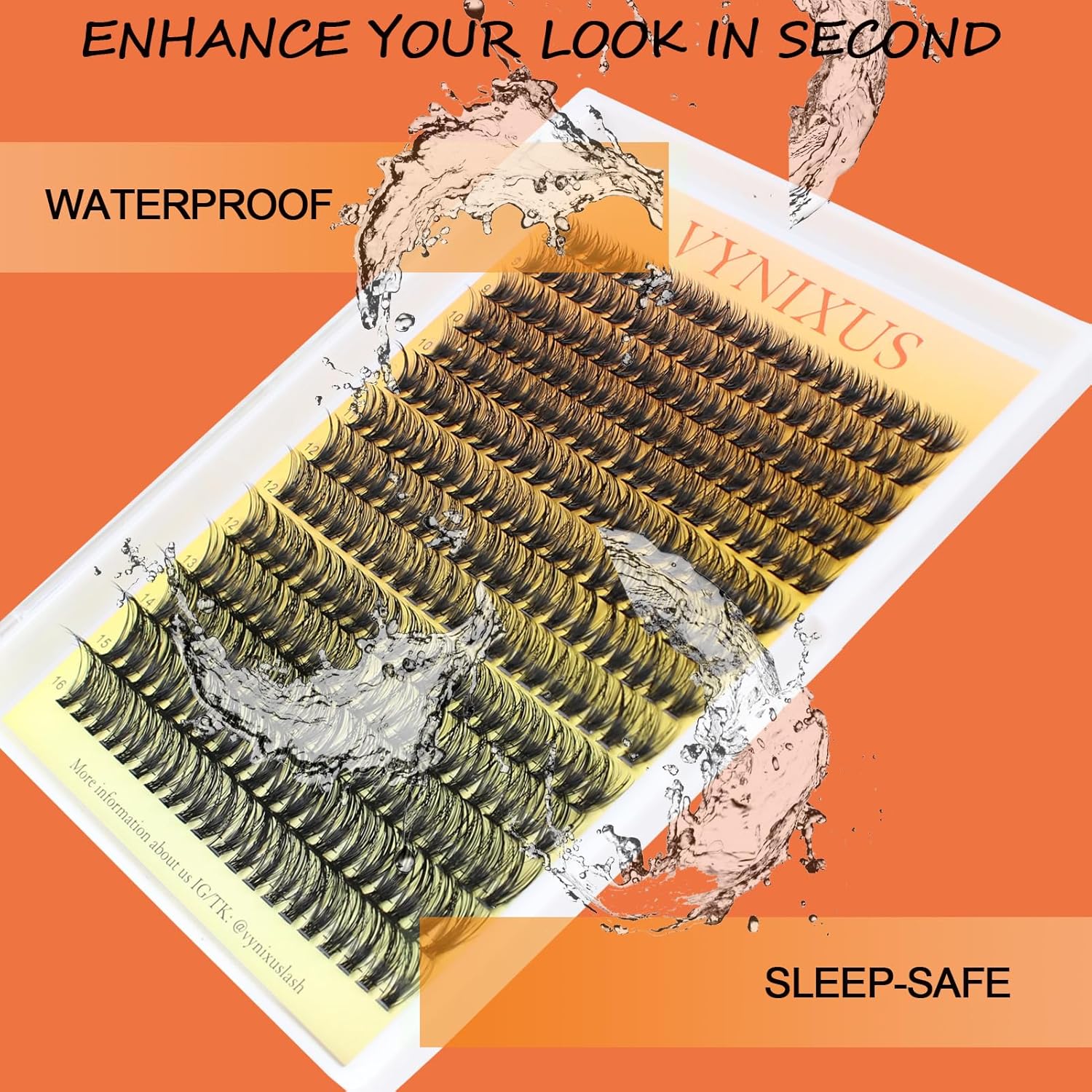 - Waterproof: Engineered for real life. Humidity-resistant fibers survive tropical or getaways, and can keep lashes clusters intact through 150 hours of dancing/sleeping/swimming.