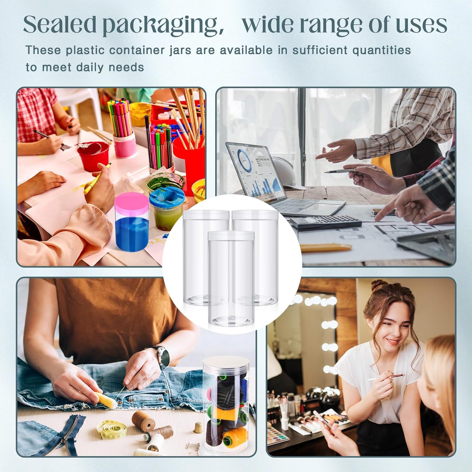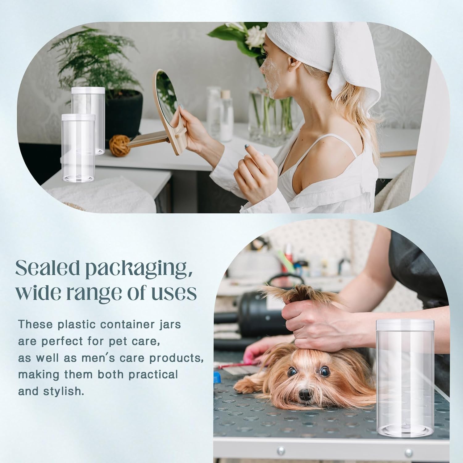 Patelai 4 Pieces Round Wide-mouth Leak Proof Plastic Container Jars with Lids for Travel Storage Makeup Beauty Products Face Creams Oils Salves Ointments DIY Making(32 Ounce,Clear)