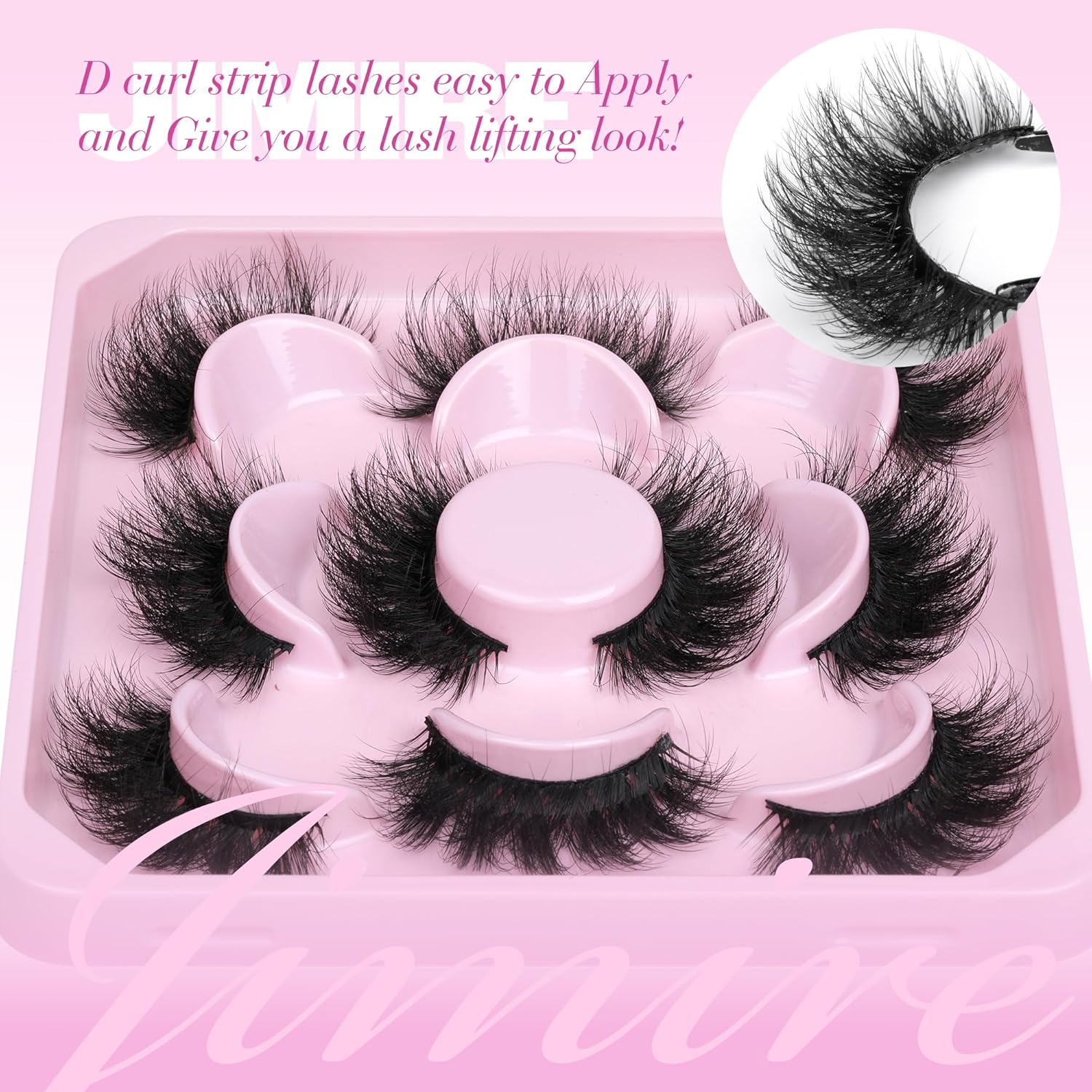 - Mink Lashes Fluffy: JIMIRE always selects premium lash fibers to ensure they are soft, lightweight, and comfortable to wear. The wispy lashes create a fluffy and voluminous look, giving you an attractive cat-eye lash extension appearance effortlessly
