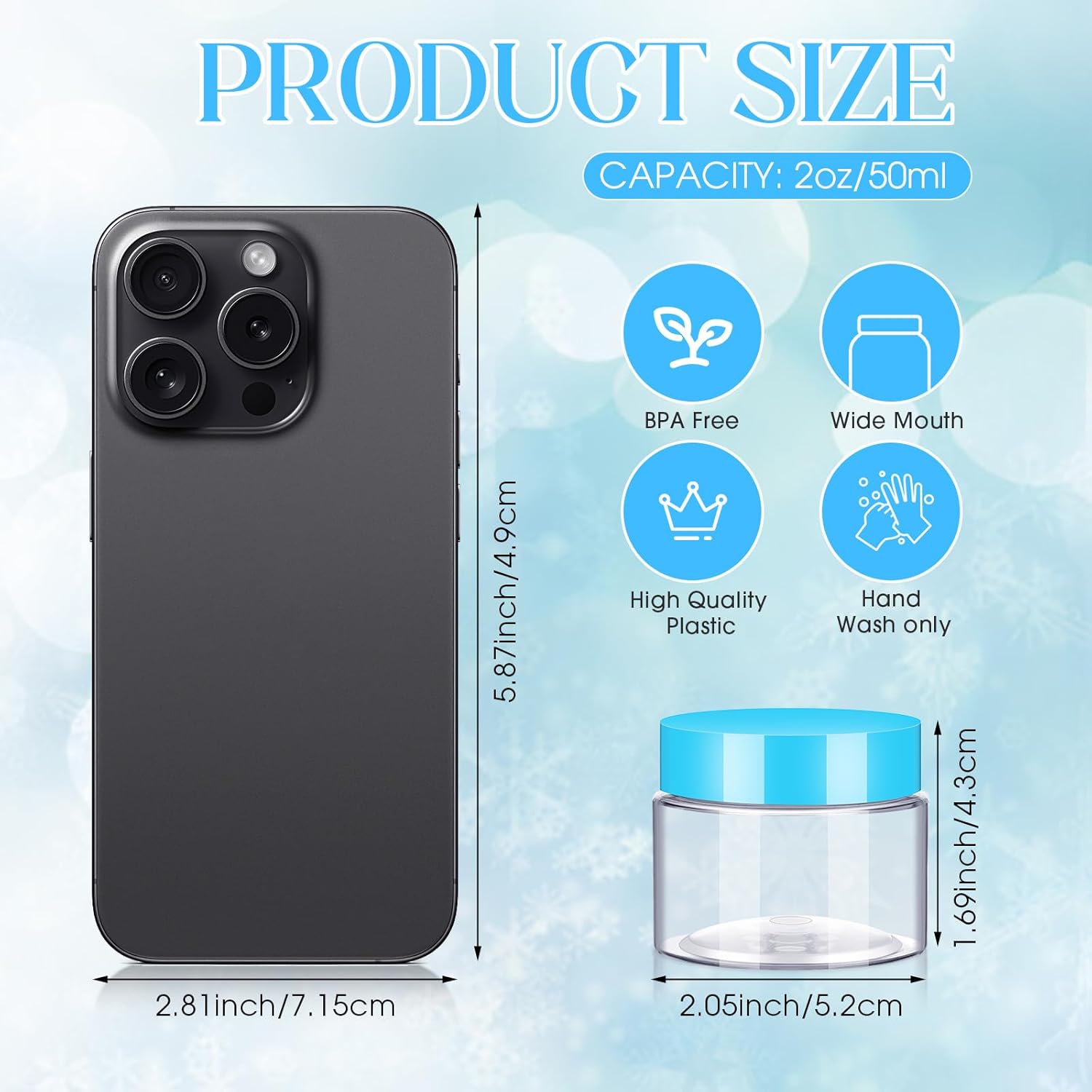 SATINIOR 100 Pcs Plastic Jars with Lids Small Containers Lids Wide Mouth Small Plastic Containers for Lotion Cream Rhinestones Body Butters Travel Storage(2 oz,Blue)