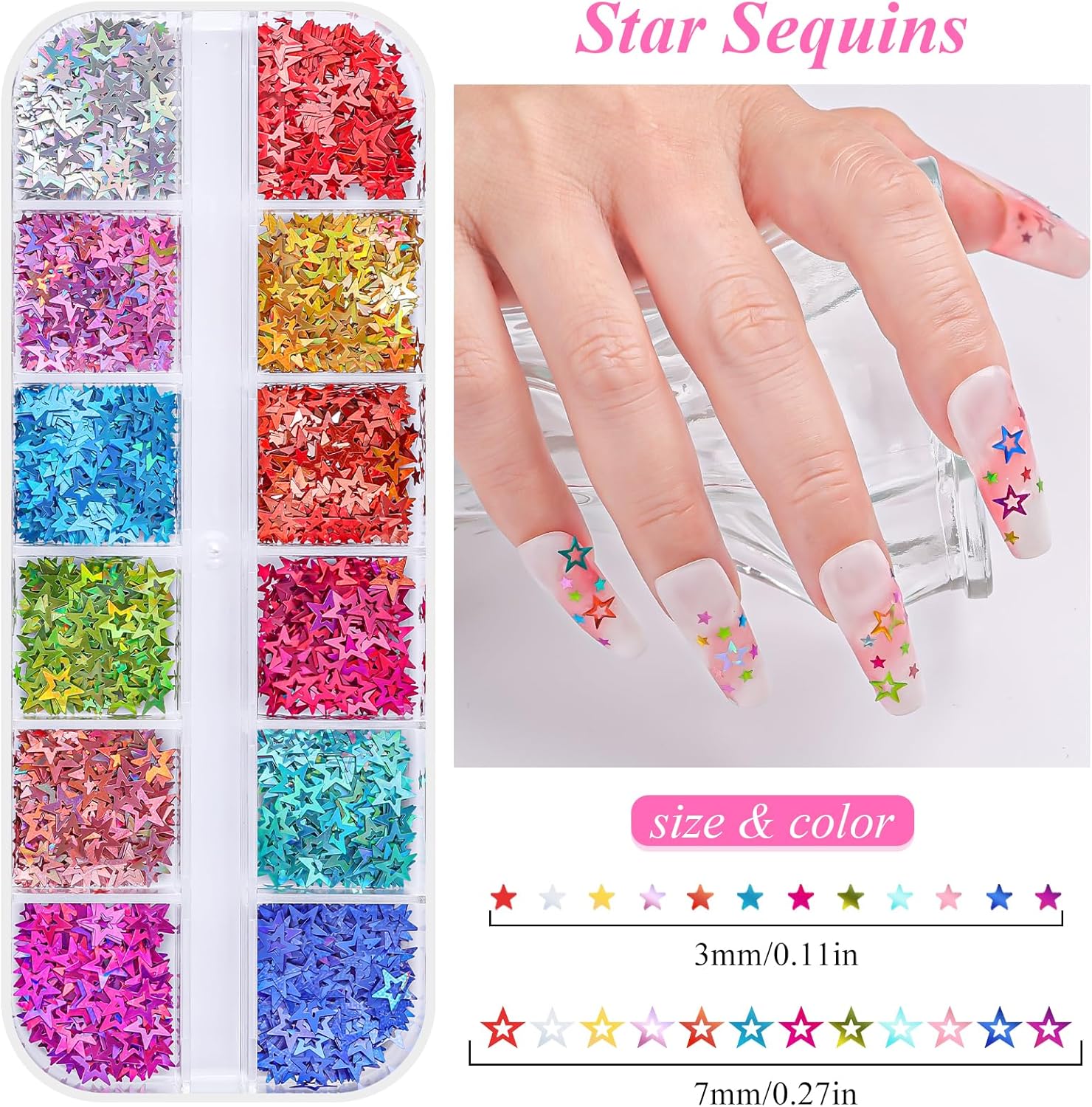 - Premium Laser Glitter Technology: These sequins use special laser-reflective coating, creating a 3D sparkling effect from every angle. Perfect for high-shine, long-lasting nail designs that catch the eye! The 3D holographic effect shifts colors under different lights, adding dazzling sparkle to your nails.