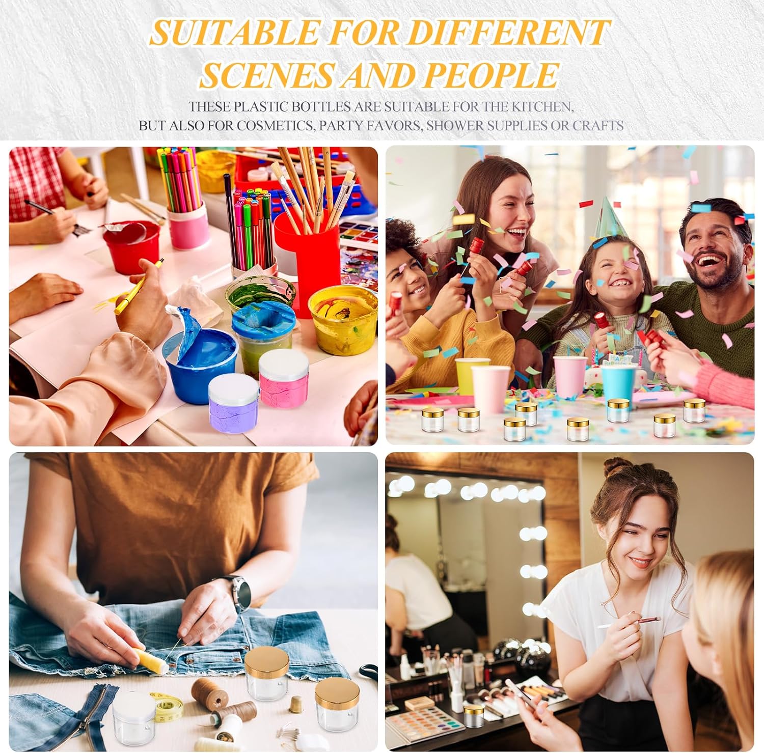SATINIOR 36 Pieces 6 oz Plastic Jars with Lids Wide Mouth Airtight Reusable Container Acrylic Cosmetic Small Jars for Lotions Ointments Travel Toiletries Creams Make up Storage(Gold)