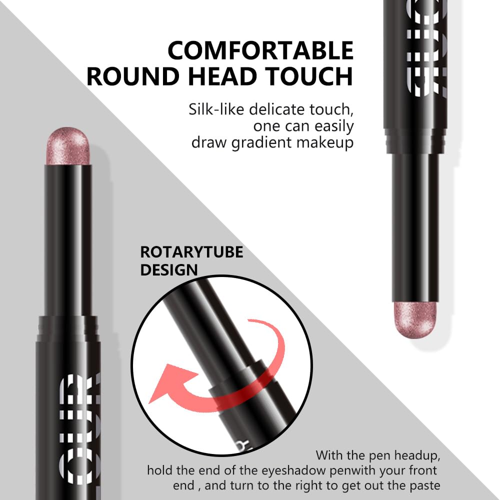 - Silky & Conveniently: Goes on smoothly like silk without clumping,skipping or smudging,perfect for sculpting, shading & defining,not exaggerated glittery.Thick-end eyeshadow crayon for quick-applying on large area,portable and let you to make up & touch up outside so easy.