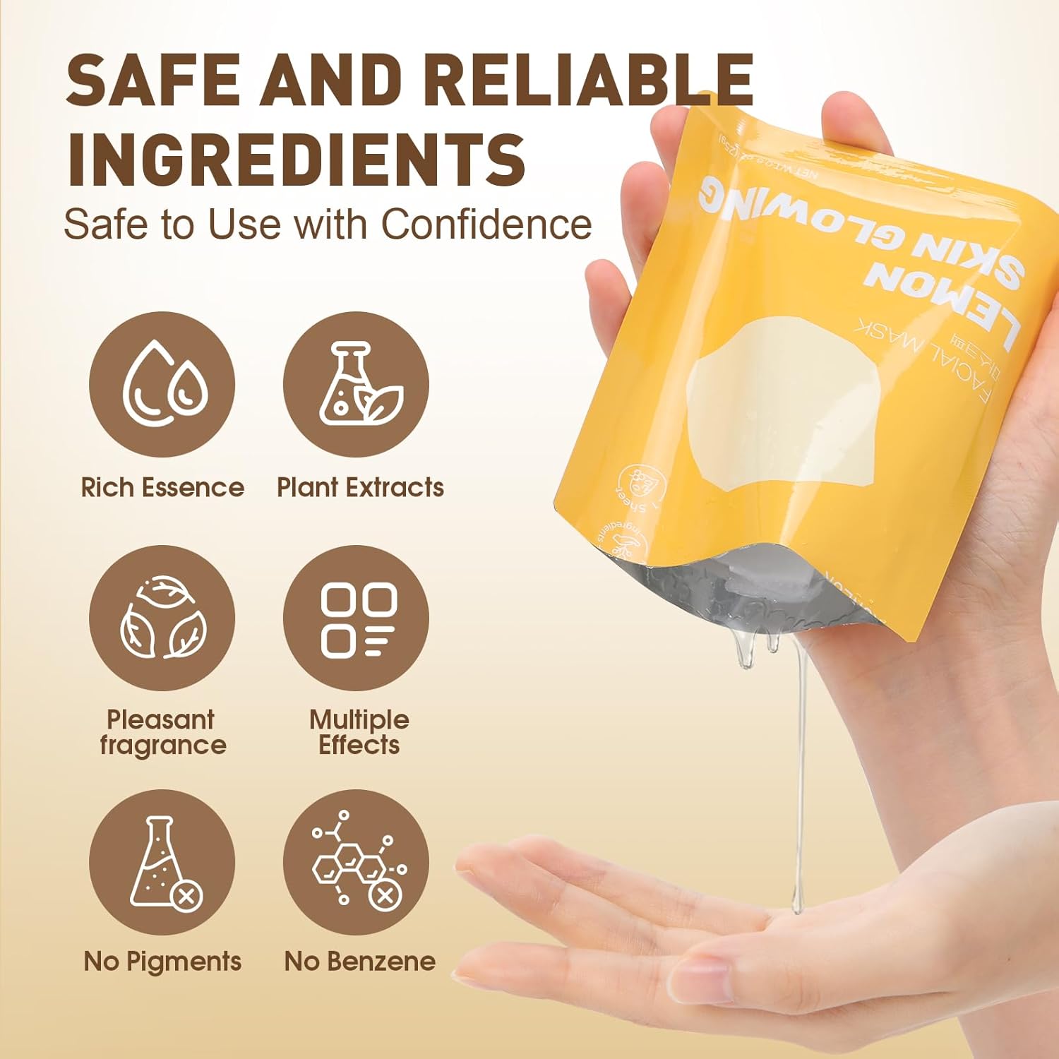 - 【How to Use Facial Masks】1.Take out the face mask,remove the covering film on one side,2.Clean your face and cover your face,3.Relax and leave on skin for 15-20 minutes,4.Remove the mask,gently massage the face and wash with water