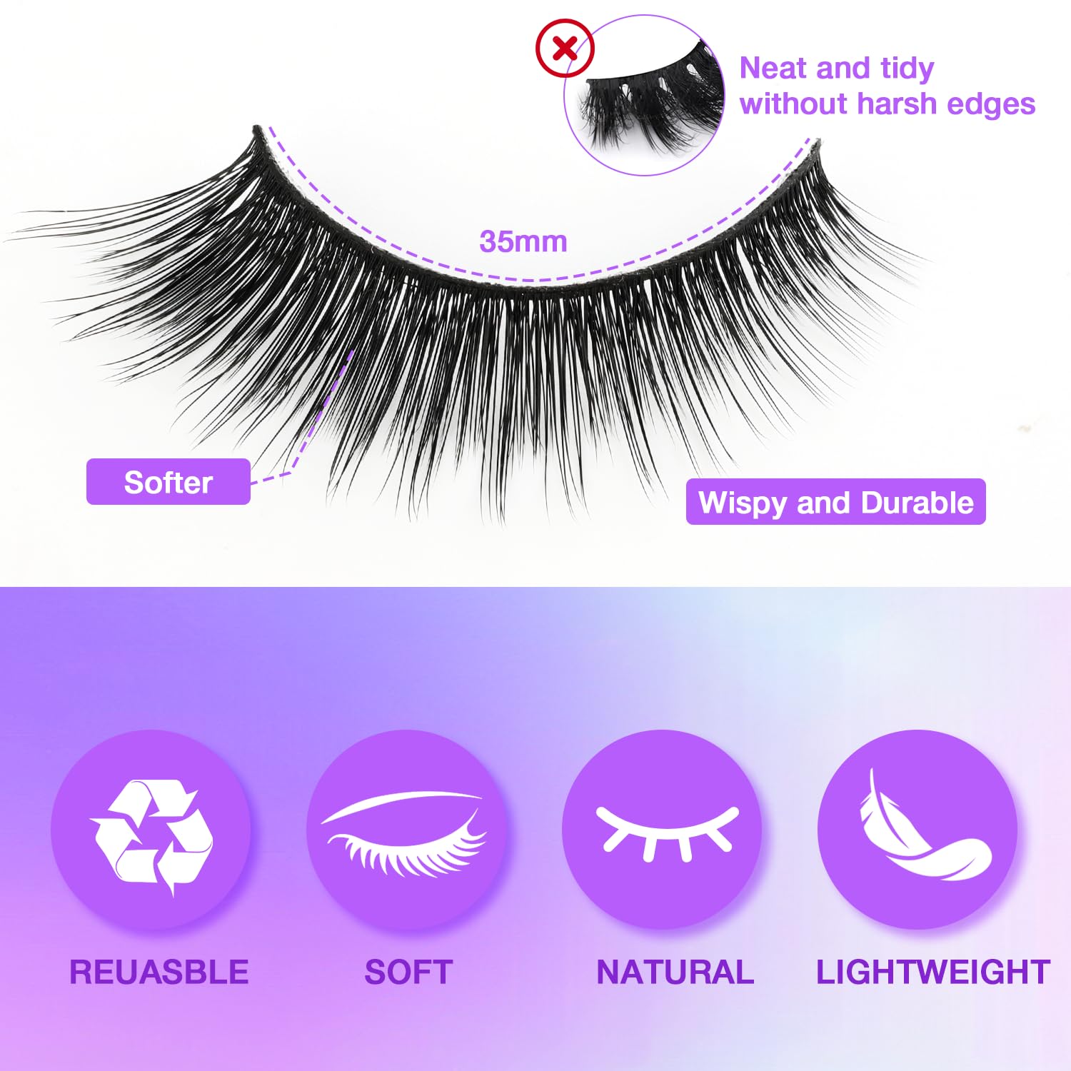 - 7 Pairs Natural-Looking Lashes Kit: Endless Beauty! Beginner-friendly false eyelashes with bond + seal + tweezer included! Achieve natural-looking wispy lashes in minutes – easy strip lashes with flexible thin band for seamless blending.