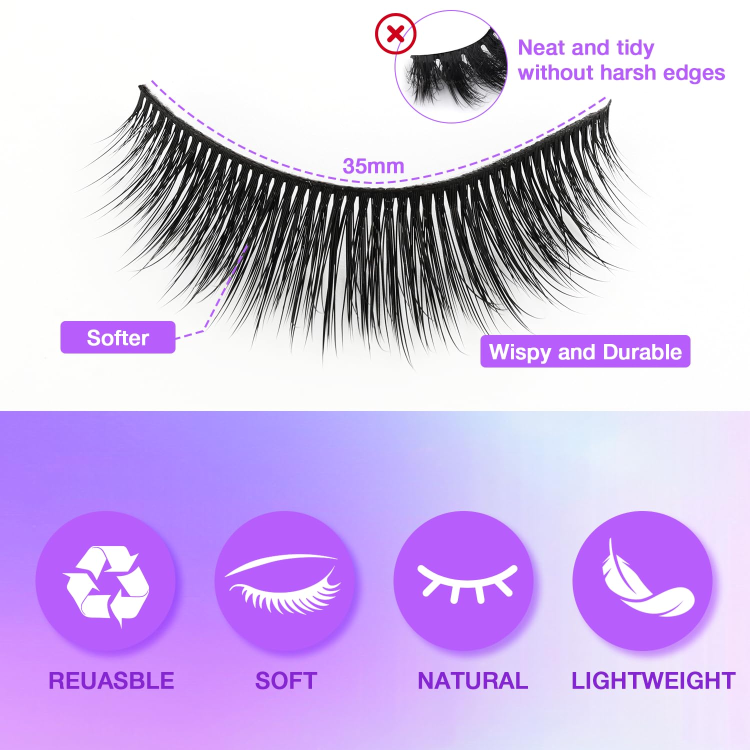 - 7 Pairs Natural-Looking Lashes Kit: Endless Beauty! Beginner-friendly false eyelashes with bond + seal + tweezer included! Achieve natural-looking wispy lashes in minutes – easy strip lashes with flexible thin band for seamless blending.