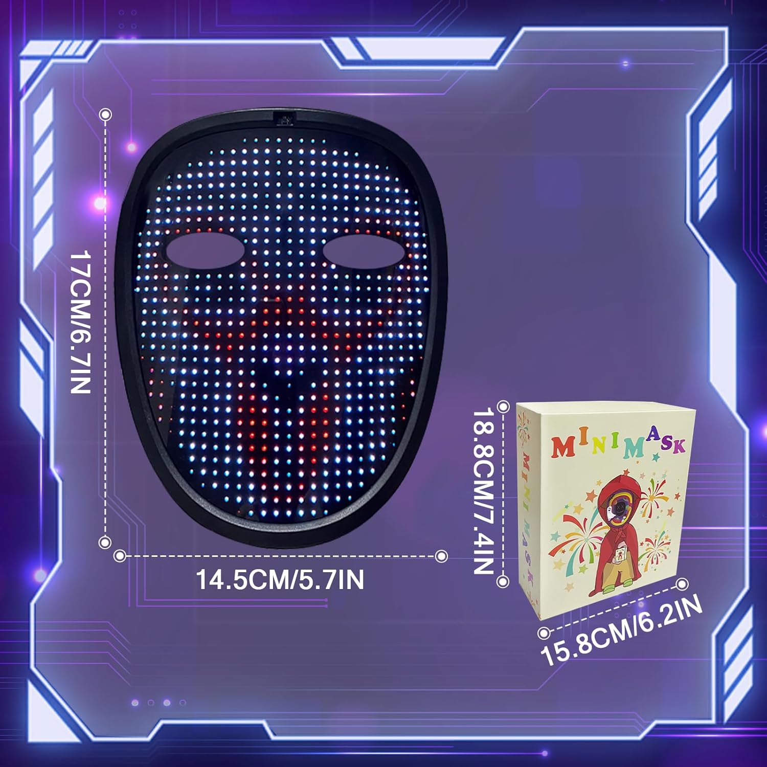 - Vibrant LED Display: The Zonasyrn LED mask features 40 dynamic images and 30 static images, 698 high-brightness LEDs and 2121 RGB LEDs, ensuring kids get stunning visuals and stand out in cosplay.
