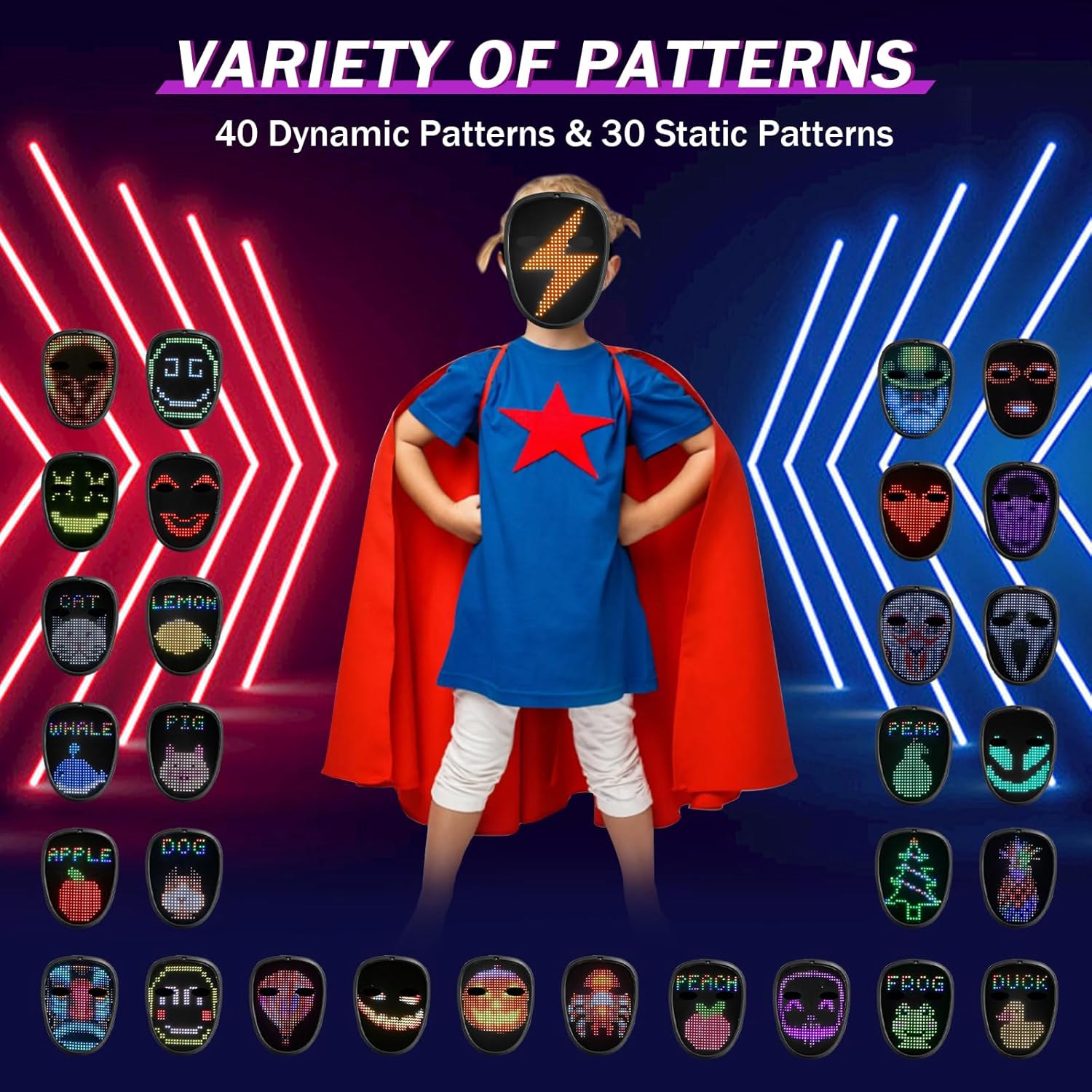 LED Mask with Gesture Sensing - 70 Patterns Display - Kids Halloween Christmas Costume Cosplay Masquerade