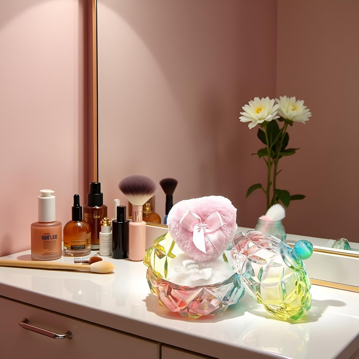 - 【Durable & Easy to Clean】This glass powder puff case is made of high quality glass material, beautiful and durable. This product is not a sealed jar, easy to clean and daily care, will not take up too much space, but can store your daily trinkets and keep your items organized.