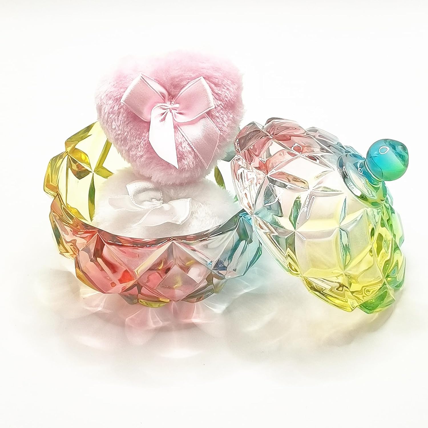 - 【You will get】 1 x Glass Powder Puff Case, reusable one white powder puff and one pink powder puff. Made of clear glass, both aesthetic and ceremonial, suitable for gift or vanity table decoration. Powder puffs are soft in texture, reusable, wet and dry
