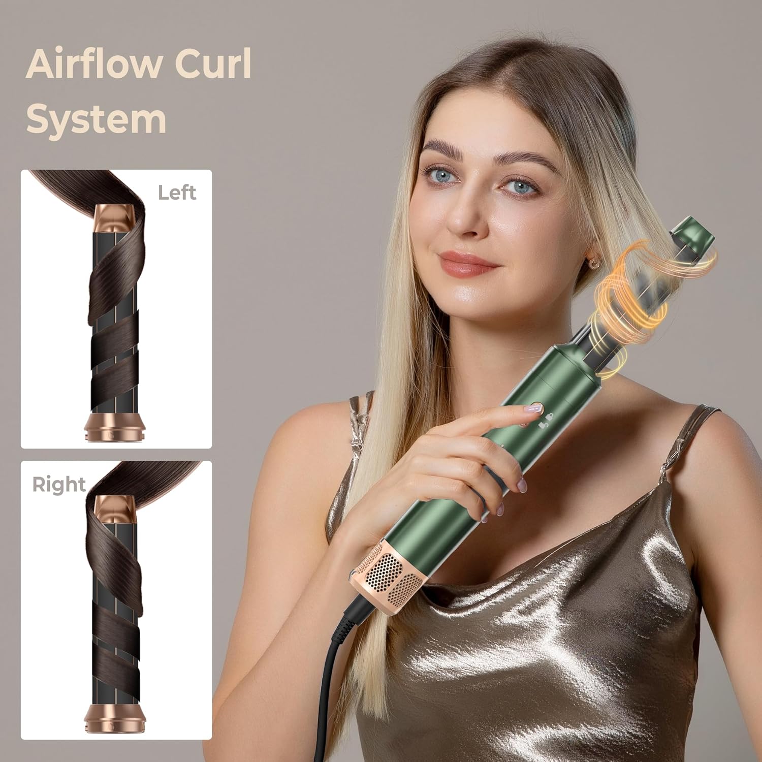 - POLITE NOTICE of AIR CURLING IRONS: 1. Hold a small section of hair about 10cm/3.93" from the end. 2. Bring the hair toward the barrel, hair will begin to wrap. 3. Must be Start wrap from the HAIR END. 4. Create tension and bring towards your head. 5. Hold in place for 15s or until dry. 6. Turn off and release. Curls from this lower-heat air styler may not last as long as those from traditional irons. Please consider this if curl longevity is important to you.