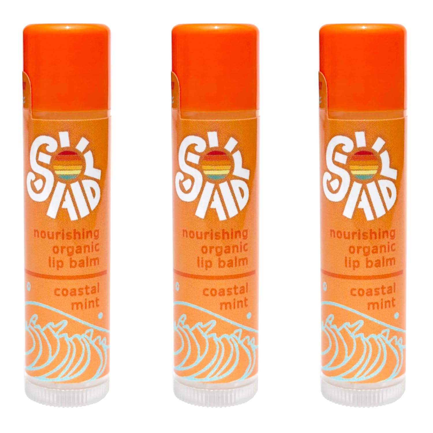 Sol Aid Organic Lip Balm – 100% Natural Lip Moisturizer (3-Pack, Coastal Mint)