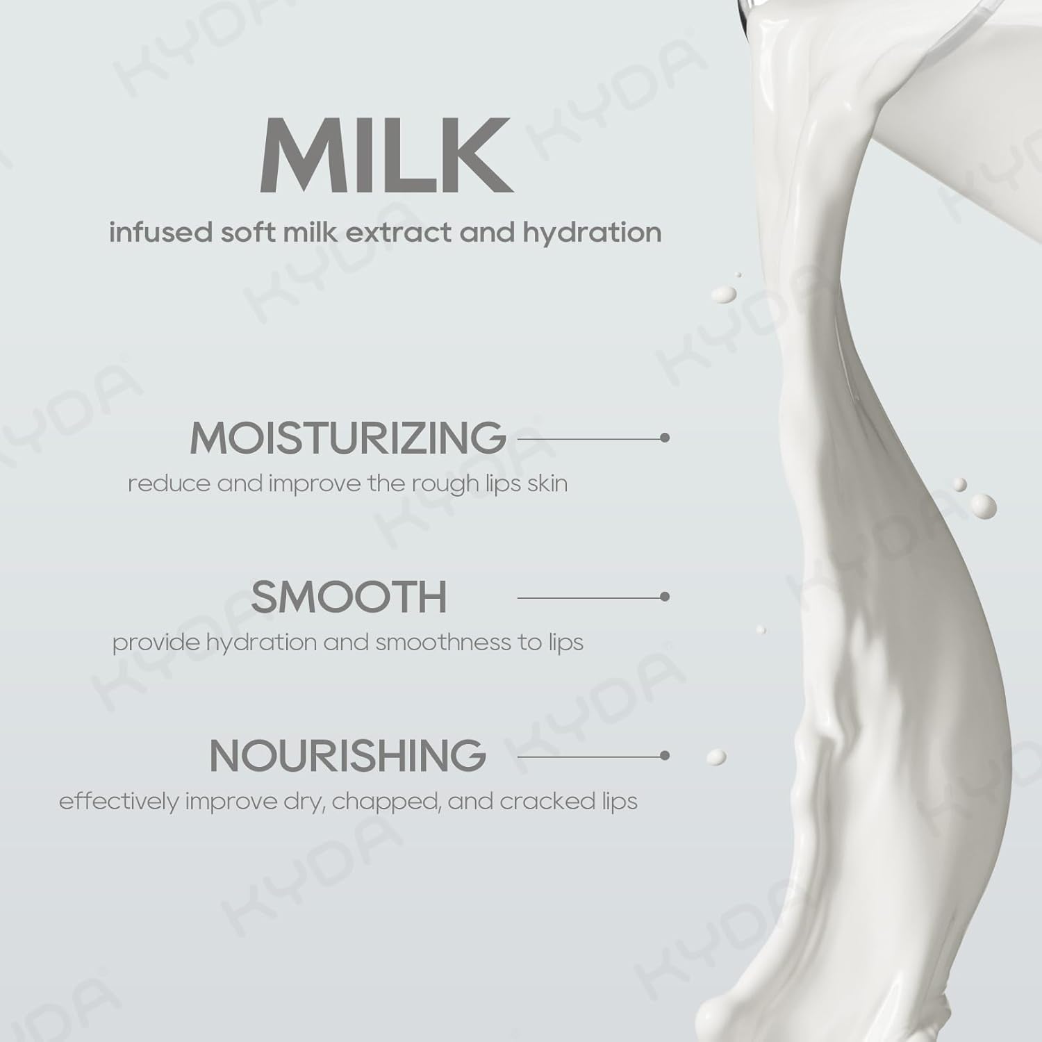 KYDA 3 Pcs Milk Moisturizing Lip Balm, Nourishes, Hydrates and Softens Dry Cracked Lips, Reduce Fine Lines, Deep Hydrating Lip Care Balm, Colorless Finish