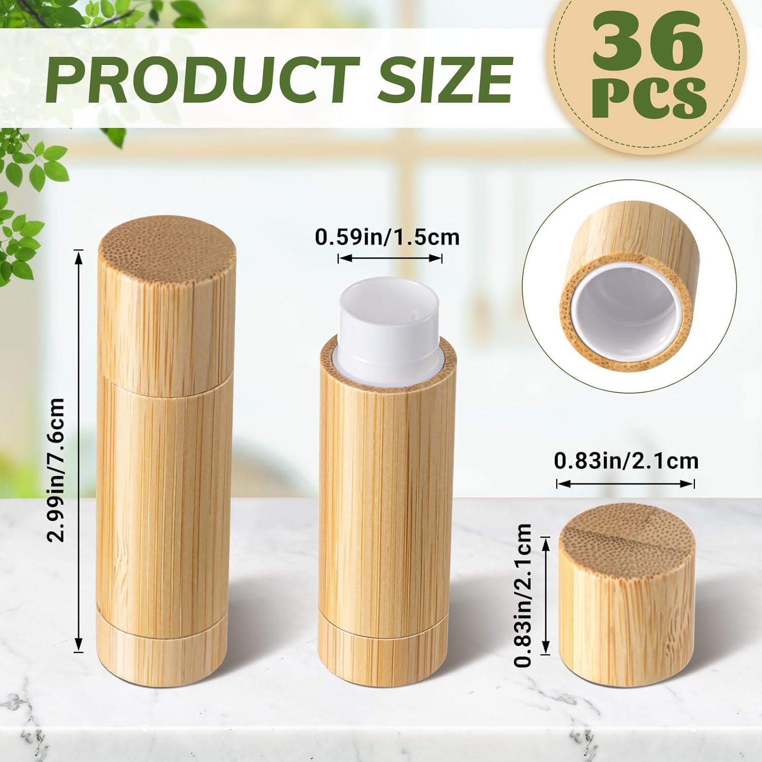 Leinuosen 36 Pcs Bamboo Empty Lipstick Tubes, Refillable 5g Lip Balm Containers with Rotable Plastic Inner for Women Girl DIY Cosmetic Lip Gloss Tubes for Lipstick, Deodorant, Solid Perfume, Makeup