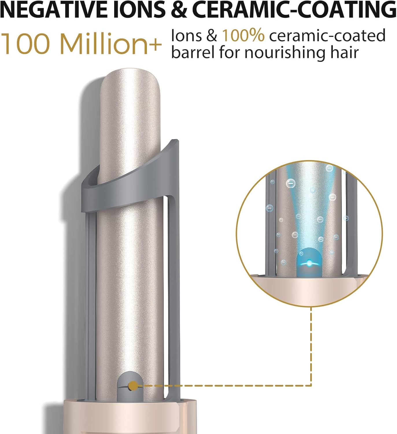 - 100M NEGATIVE IONS & 100% CERAMIC COATING: Achieve salon-perfect curls without damaging your hair! This rotating curling iron releases over 100 million negative ions that continuously nourish the hair roots, and the 100% ceramic barrel prevents heat damage, leaving your hair silky smooth and creating gorgeous, defined curls!
